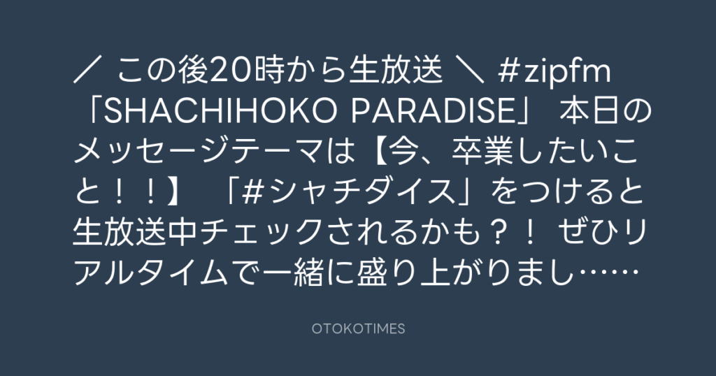 / 📢この後20時から生放送📻 \ #zipfm 「SHACHIHOKO PARADISE」 本日のメッセー... -