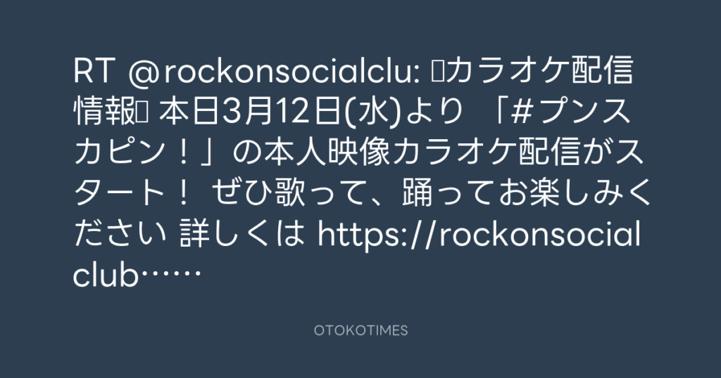 RT @rockonsocialclu: ◤🎤カラオケ配信情報◢ 本日3月12日(水)より 「#プンスカピン... -