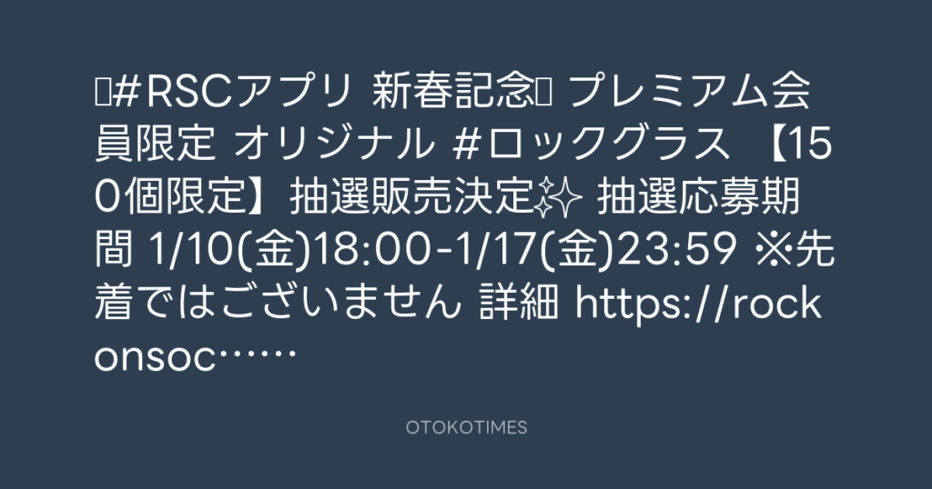 ◤#RSCアプリ 新春記念🎍◢ プレミアム会員限定 オリジナル #ロックグラス 【150個限... -