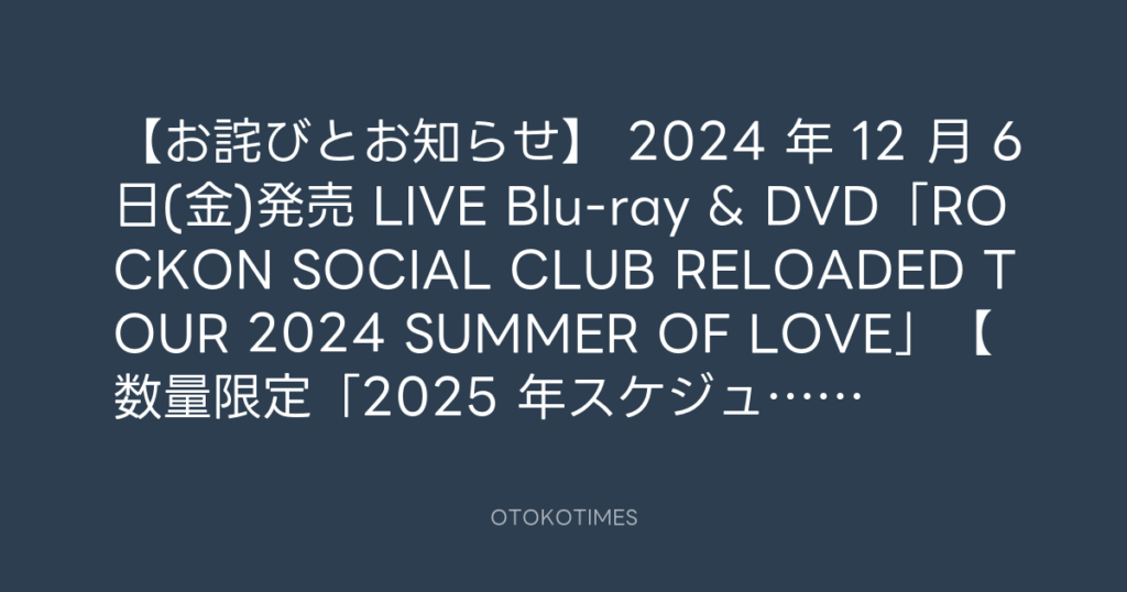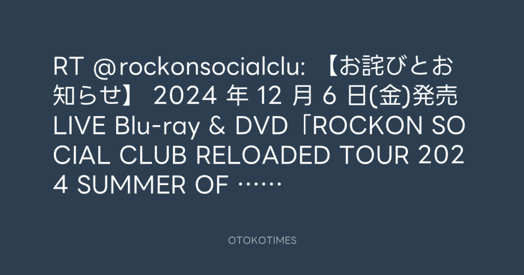 RT @rockonsocialclu: 【お詫びとお知らせ】 2024 年 12 月 6 日(金)発売 LIVE Blu... -