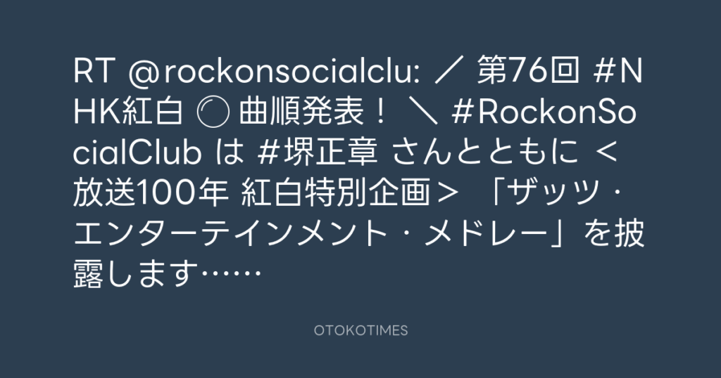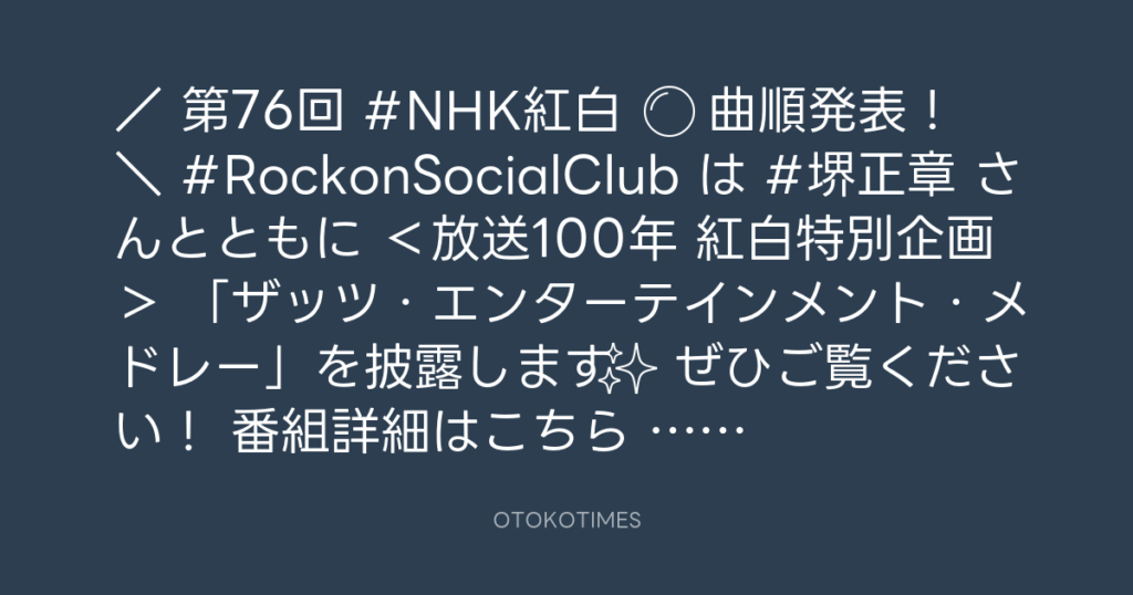 / 🔴第76回 #NHK紅白 ⚪️ 曲順発表! \ #RockonSocialClub は #堺正章 さんとと... -