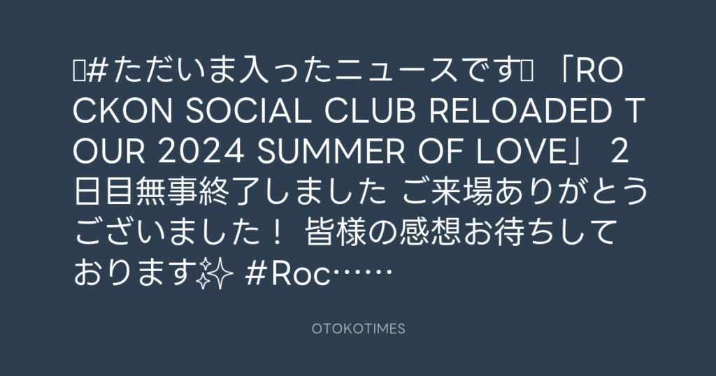 ◤#ただいま入ったニュースです◢ 「ROCKON SOCIAL CLUB RELOADED TOUR 2024 SUMMER ... -