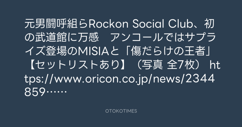 元男闘呼組らRockon Social Club、初の武道館に万感 アンコールではサプライズ登... -