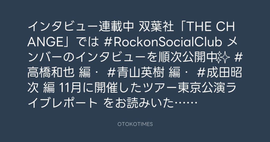 📢インタビュー連載中📝 双葉社「THE CHANGE」では #RockonSocialClub メンバーの... -