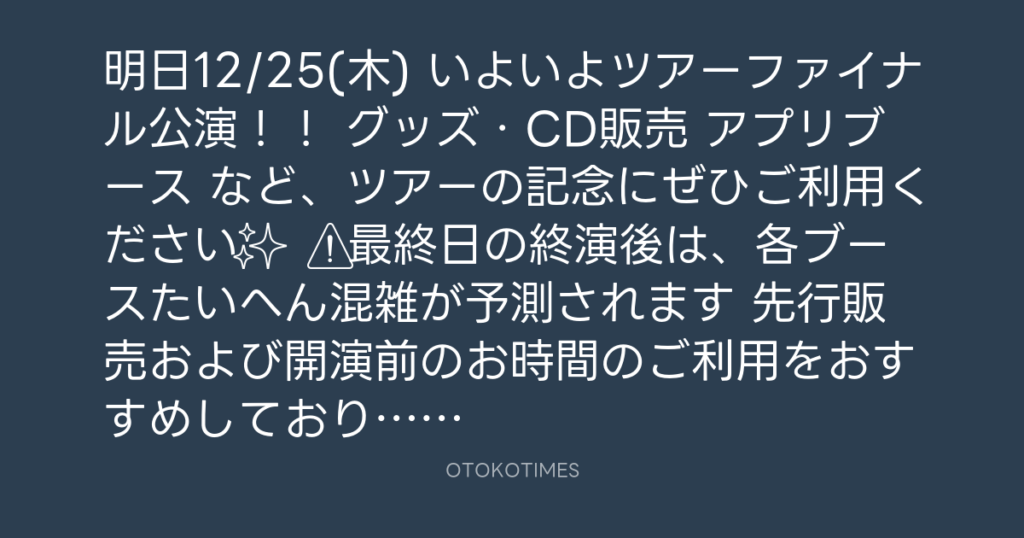 🎊明日12/25(木) いよいよツアーファイナル公演!! 📍グッズ・CD販売 📍アプリブ... -