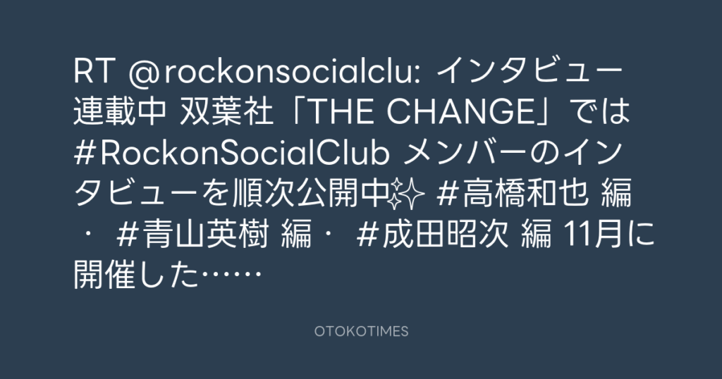 RT @rockonsocialclu: 📢インタビュー連載中📝 双葉社「THE CHANGE」では #RockonS... -