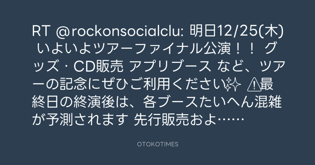 RT @rockonsocialclu: 🎊明日12/25(木) いよいよツアーファイナル公演!! 📍グッ... -