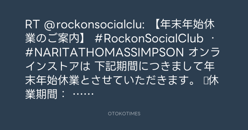 RT @rockonsocialclu: 【年末年始休業のご案内】 #RockonSocialClub ・ #NARITATHO... -