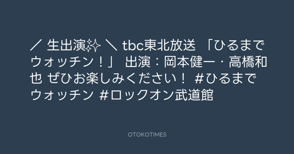 / 📢生出演✨ \ tbc東北放送 「ひるまでウォッチン!」 出演:岡本健一・高橋和...