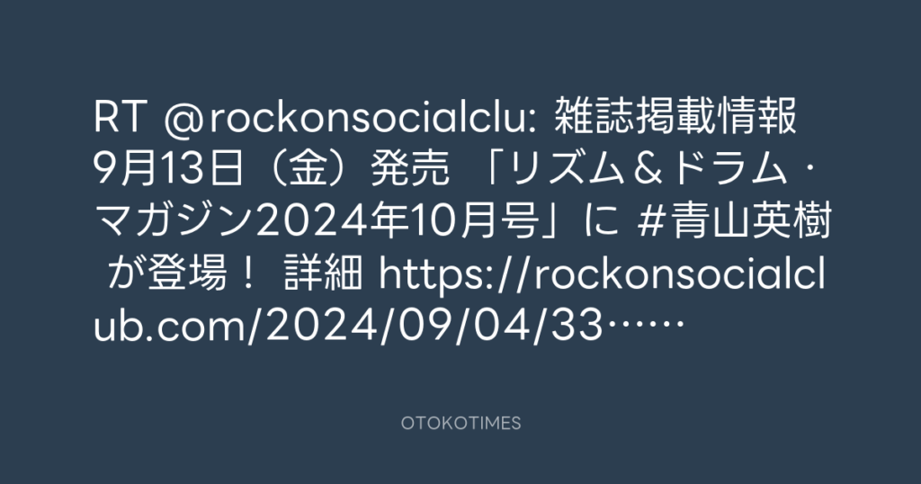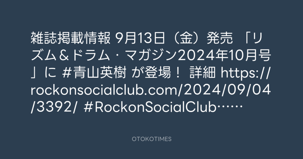 RT @rockonsocialclu: 📕雑誌掲載情報📢 9月13日(金)発売 「リズム&ドラム・マ... -