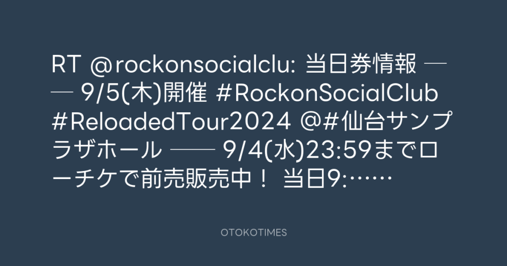 📢当日券情報🎫 🎸── 9/5(木)開催🔥 #RockonSocialClub #ReloadedTour2024 @#仙台... -
