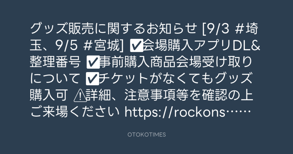 📢グッズ販売に関するお知らせ [9/3 #埼玉、9/5 #宮城] ✅会場購入アプリDL&整... -