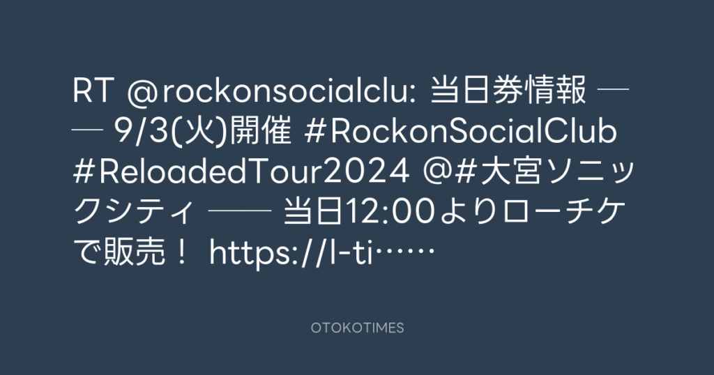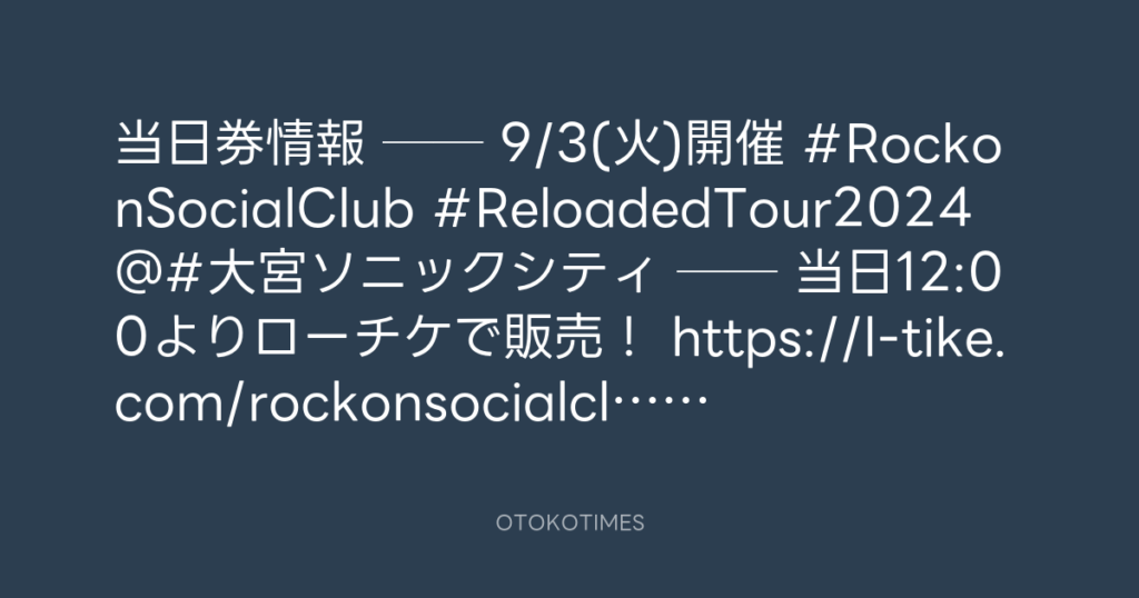 📢当日券情報🎫 🎸── 9/3(火)開催🔥 #RockonSocialClub #ReloadedTour2024 @#大宮... -