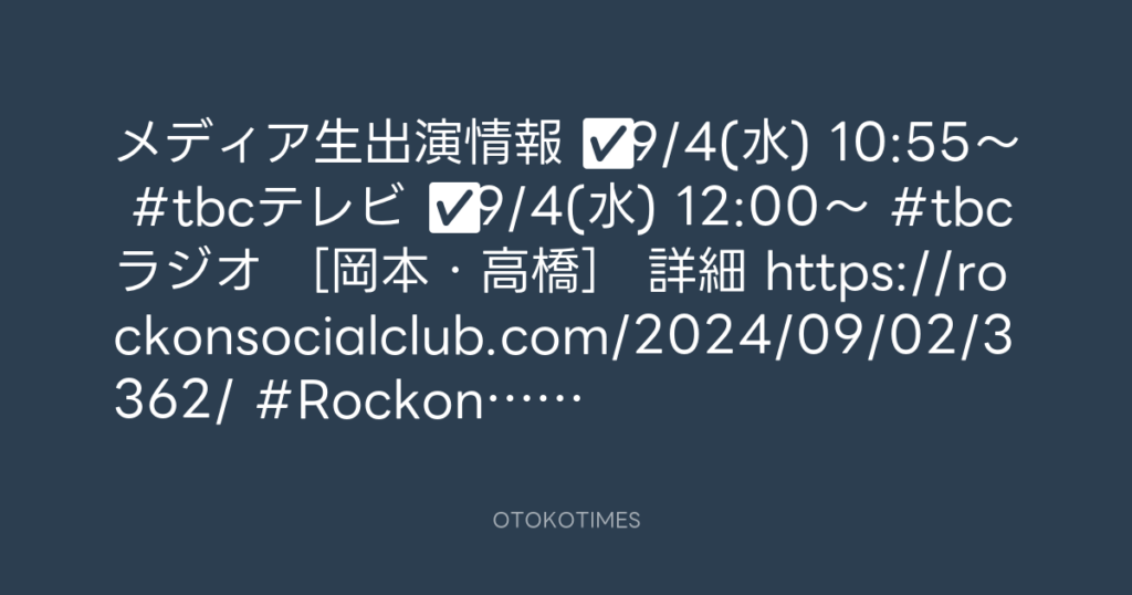 📻メディア生出演情報📺 ✅9/4(水) 10:55~ #tbcテレビ ✅9/4(水) 12:00~ #tbcラ... -