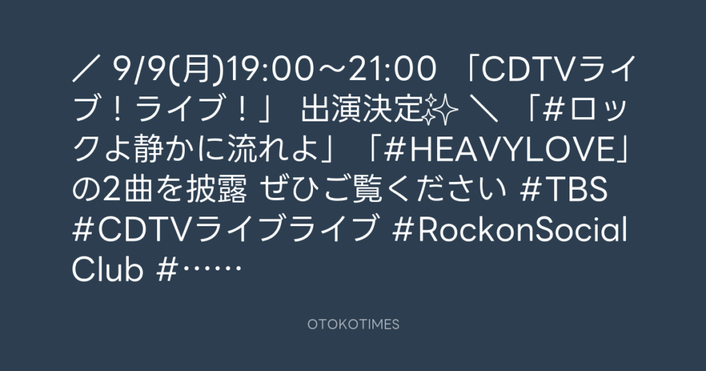 / 📢9/9(月)19:00〜21:00 「CDTVライブ!ライブ!」📺 出演決定✨ \ 「#ロックよ... -