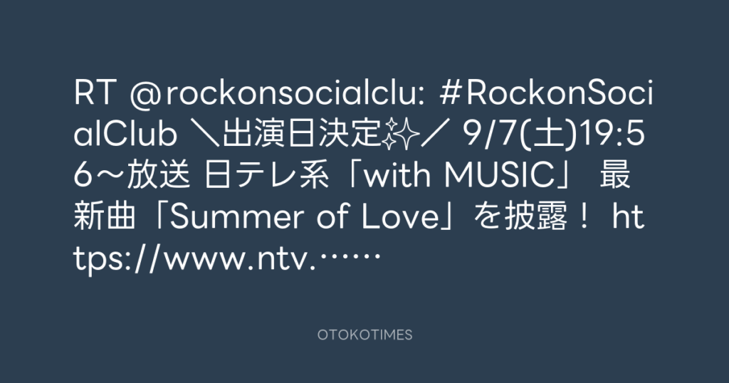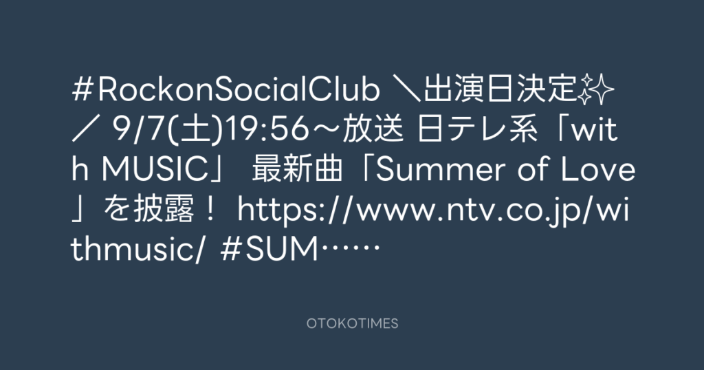 #RockonSocialClub \出演日決定✨/ 9/7(土)19:56〜放送 日テレ系「with MUSIC」... -