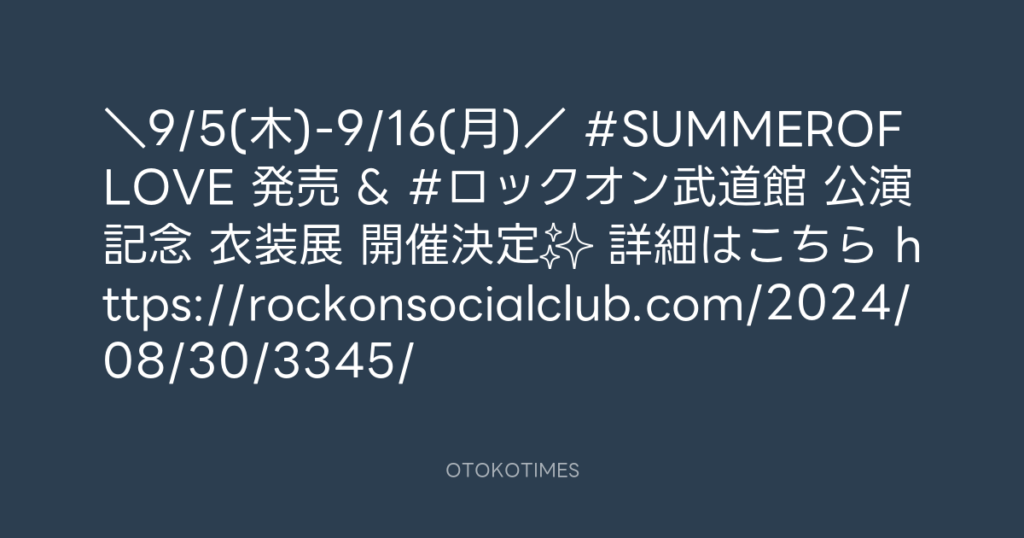\9/5(木)-9/16(月)/ #SUMMEROFLOVE 発売 & #ロックオン武道館 公演記念 衣装... -