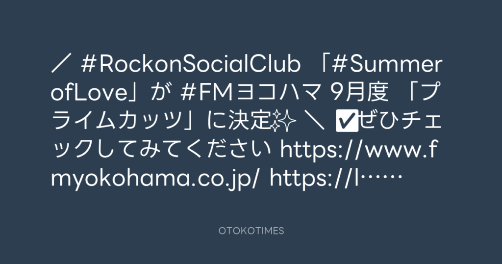 / #RockonSocialClub 「#SummerofLove」が #FMヨコハマ 9月度 「プライムカッツ」... -