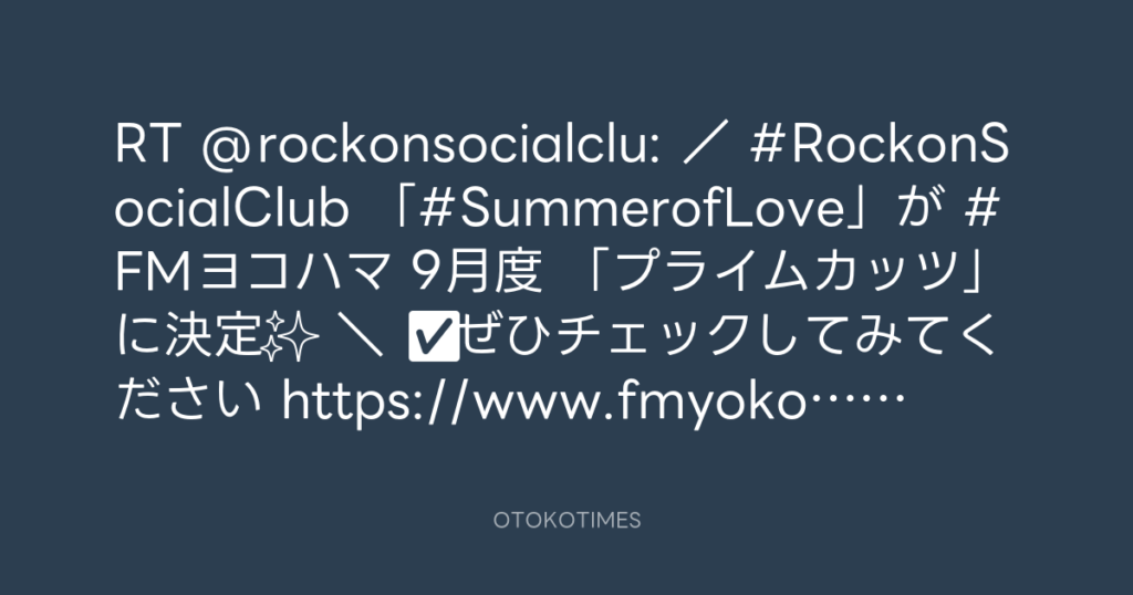 RT @rockonsocialclu: / #RockonSocialClub 「#SummerofLove」が #FMヨコハマ 9月... -
