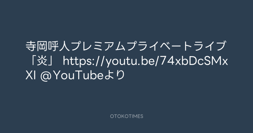 寺岡呼人プレミアムプライベートライブ「炎」 https://youtu.be/74xbDcSMxXI @YouT... -