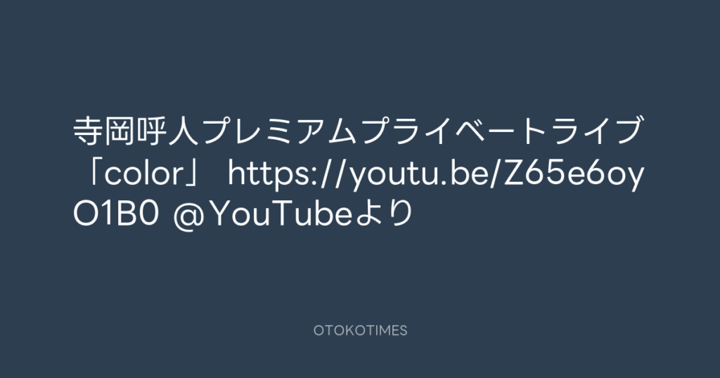 寺岡呼人プレミアムプライベートライブ「color」 https://youtu.be/Z65e6oyO1B0 @Y... -