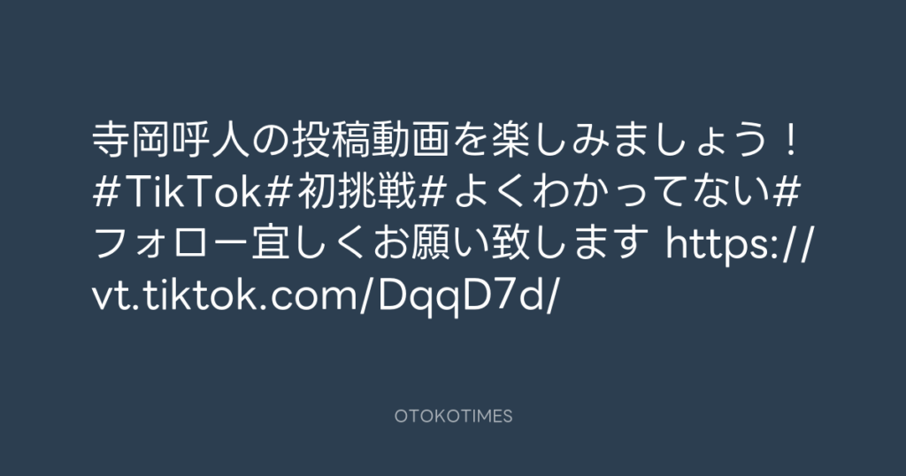寺岡呼人の投稿動画を楽しみましょう!#TikTok#初挑戦#よくわかってない#フォロー...