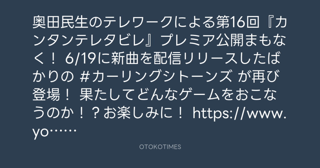 奥田民生のテレワークによる第16回『カンタンテレタビレ』プレミア公開まもなく! ... -