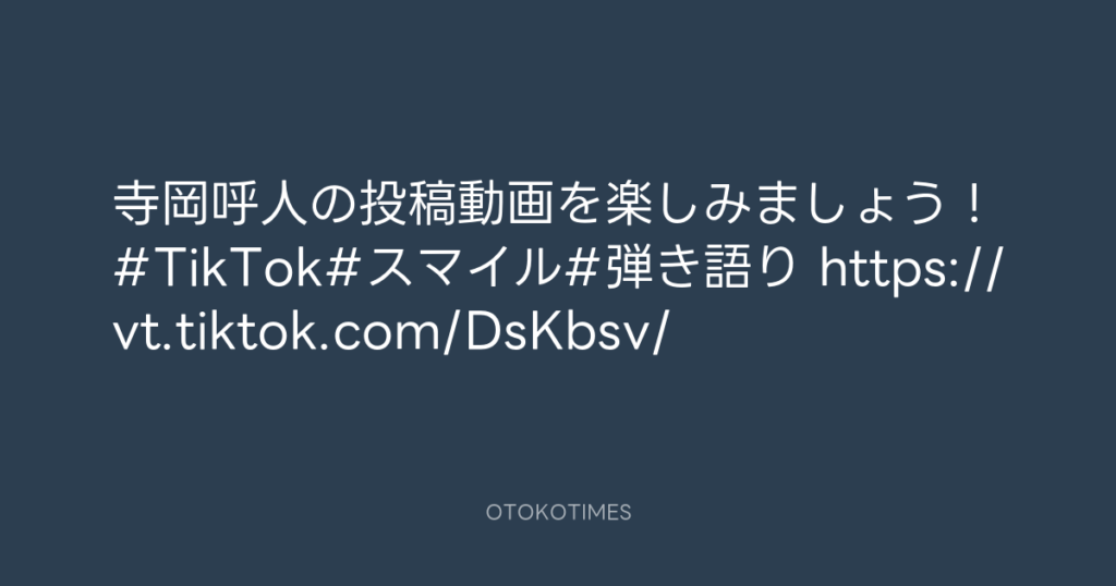 寺岡呼人の投稿動画を楽しみましょう!#TikTok#スマイル#弾き語り https://vt.tikt... -