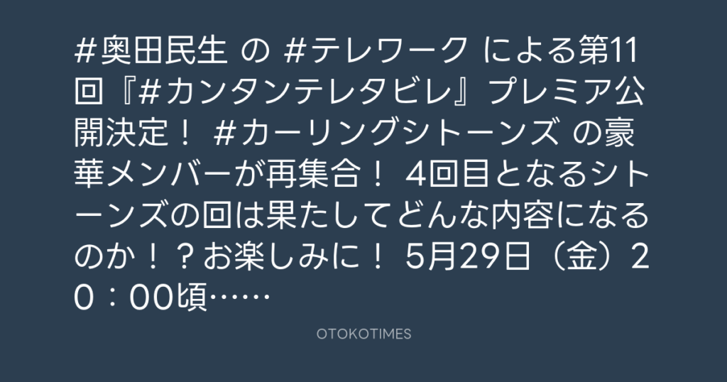 #奥田民生 の #テレワーク による第11回『#カンタンテレタビレ』プレミア公開決定... -