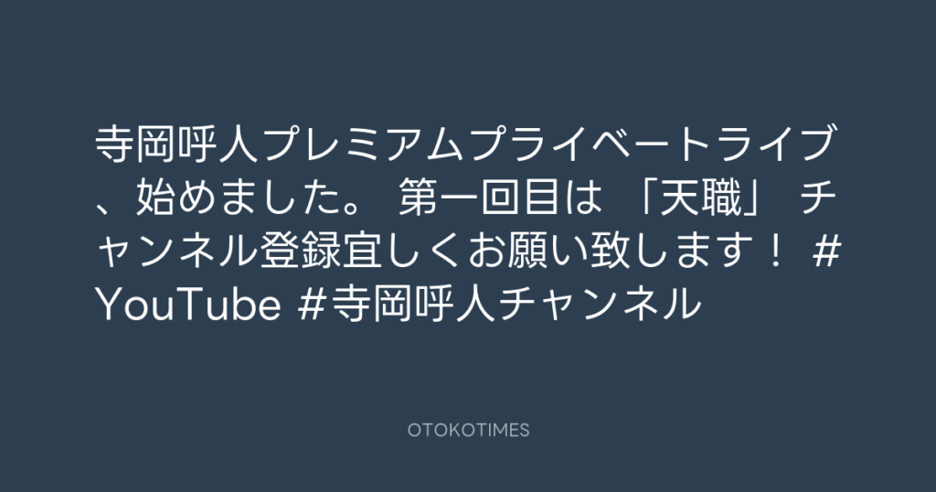 寺岡呼人プレミアムプライベートライブ、始めました。 第一回目は 「天職」 ... -