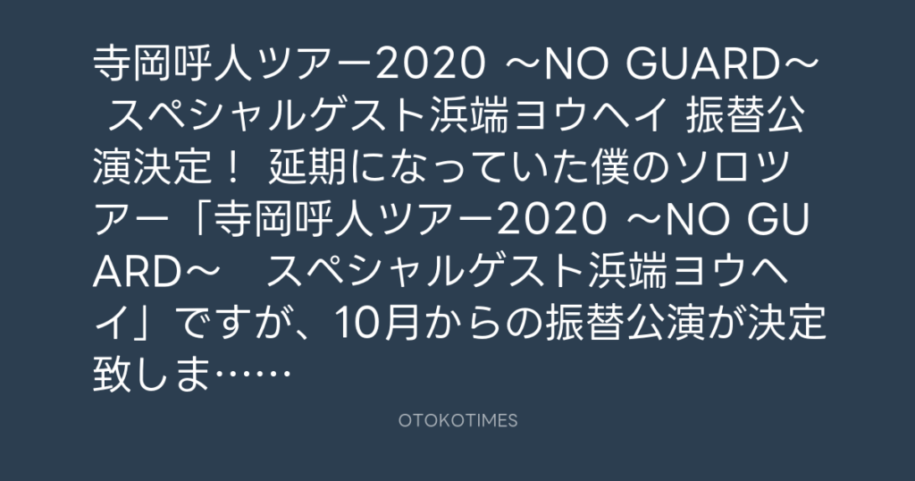 寺岡呼人ツアー2020 〜NO GUARD〜 スペシャルゲスト浜端ヨウヘイ 振替公演決定... -
