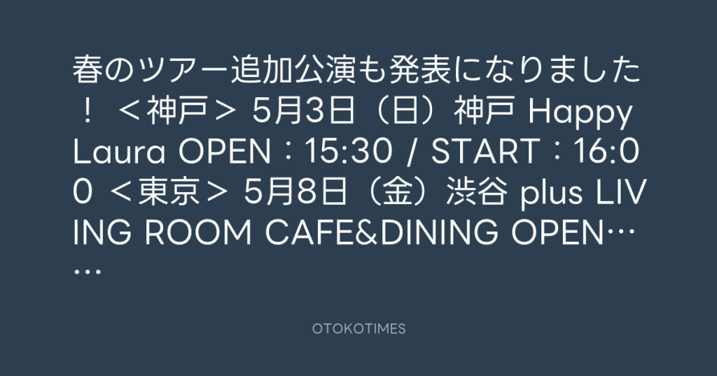 春のツアー追加公演も発表になりました! <神戸> 5月3日(日)神戸 Happy Laura ... -