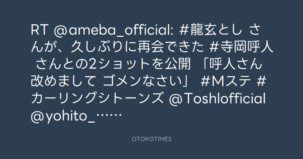 RT @ameba_official: #龍玄とし さんが、久しぶりに再会できた #寺岡呼人 さんとの... -