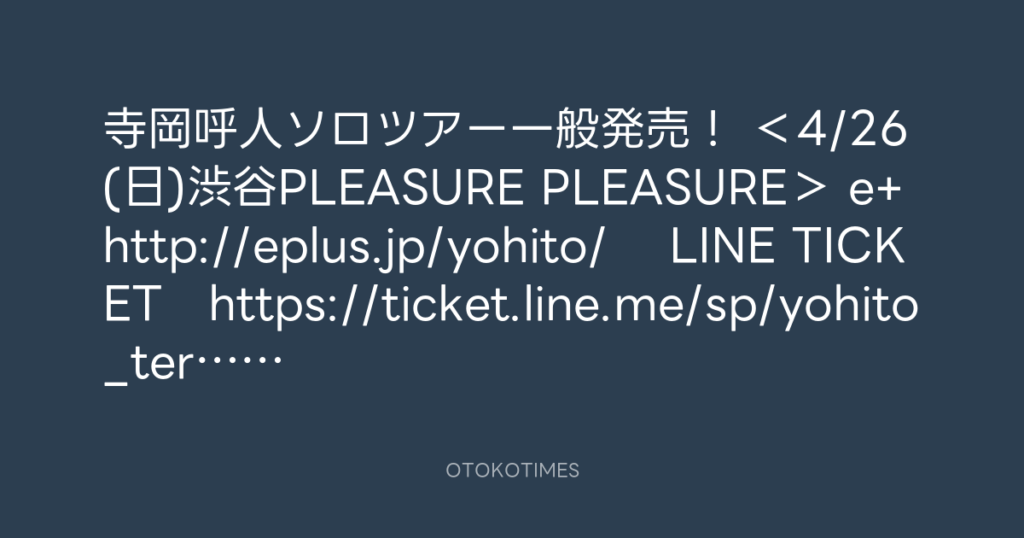 寺岡呼人ソロツアー一般発売! <4/26(日)渋谷PLEASURE PLEASURE> e+ http://epl... -
