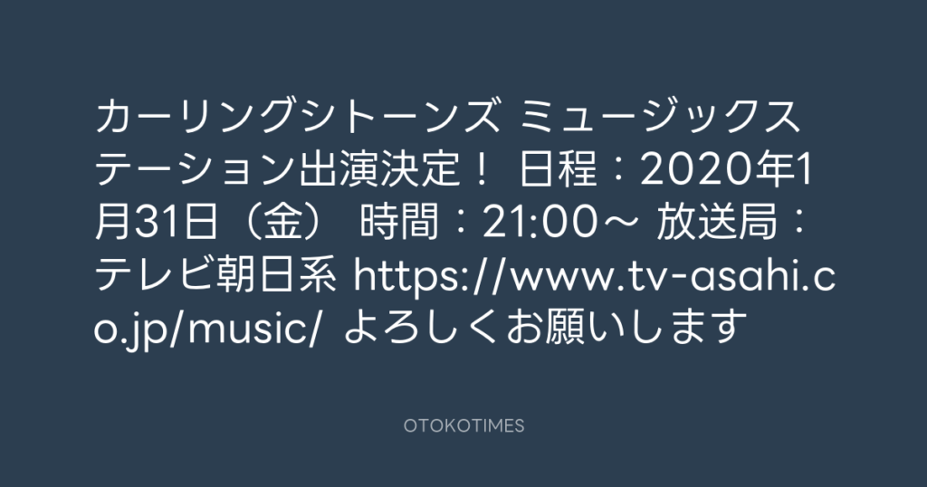 カーリングシトーンズ ミュージックステーション出演決定! 日程:2020年1月31日(...