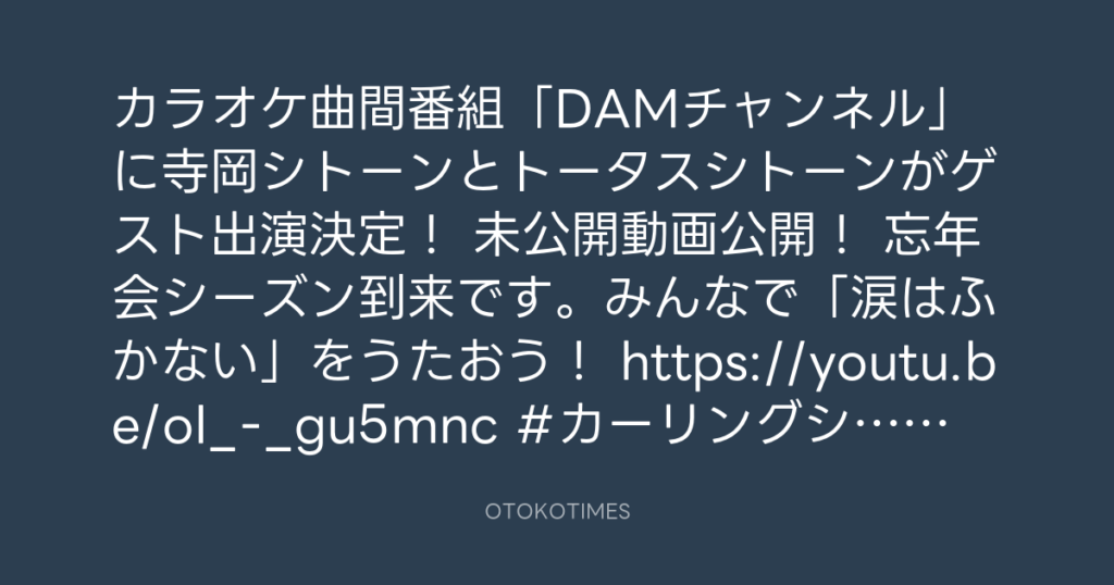 カラオケ曲間番組「DAMチャンネル」に寺岡シトーンとトータスシトーンがゲスト出演...