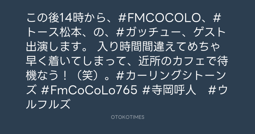 この後14時から、#FMCOCOLO、#トース松本、の、#ガッチュー、ゲスト出演します。 ... -
