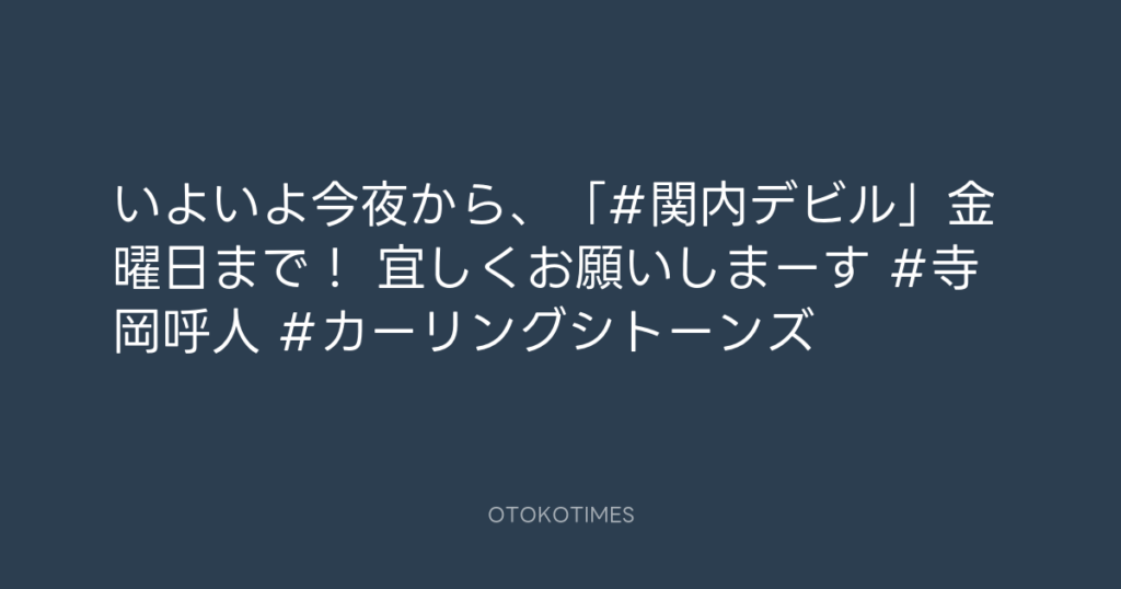 いよいよ今夜から、「#関内デビル」金曜日まで! 宜しくお願いしまーす🤲 #寺岡呼... -