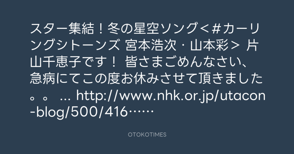 スター集結!冬の星空ソング<#カーリングシトーンズ 宮本浩次・山本彩> 片山千恵... -