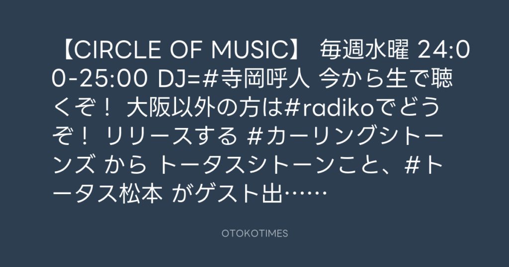 【CIRCLE OF MUSIC】 毎週水曜 24:00-25:00 DJ=#寺岡呼人 今から生で聴くぞ! 大阪... -