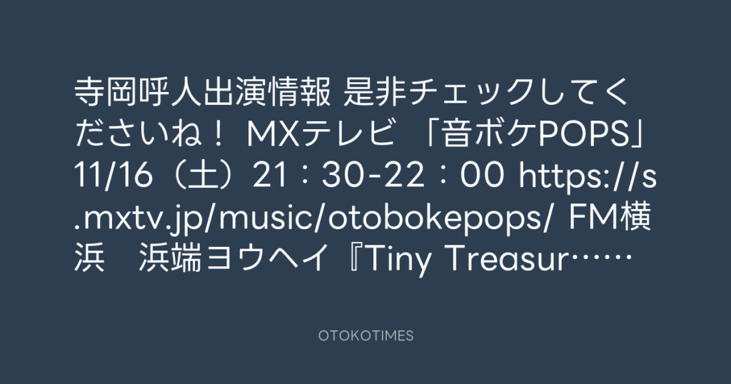寺岡呼人出演情報 是非チェックしてくださいね! MXテレビ 「音ボケPOPS」11/16(... -