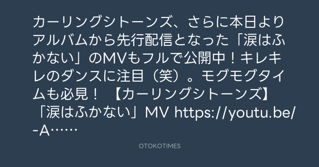 カーリングシトーンズ、さらに本日よりアルバムから先行配信となった「涙はふかな... -