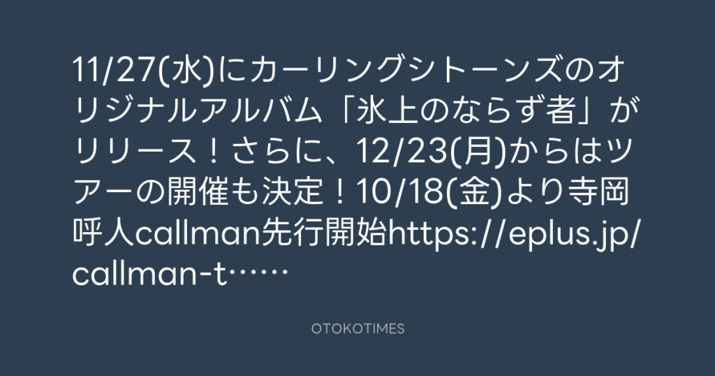 カーリングシトーンズアルバム発売決定! そして、初の全国ツアー決定! カー... -
