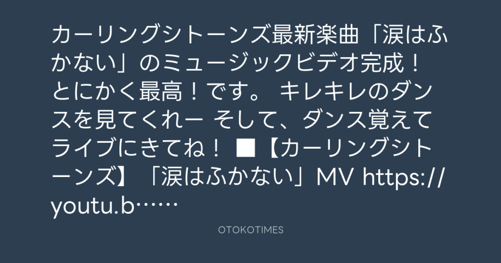 カーリングシトーンズ最新楽曲「涙はふかない」のミュージックビデオ完成! とに... -