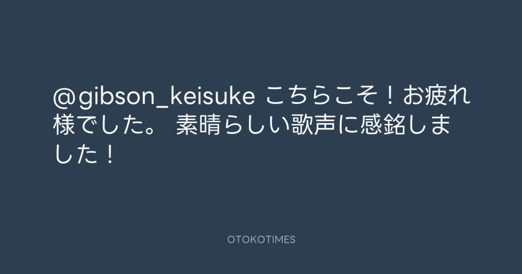 @gibson_keisuke こちらこそ!お疲れ様でした。 素晴らしい歌声に感銘しました! -