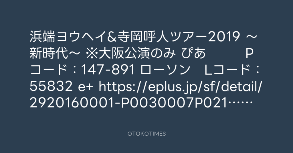 浜端ヨウヘイ&寺岡呼人ツアー2019 ~新時代~ ※大阪公演のみ ぴあ Pコー... -