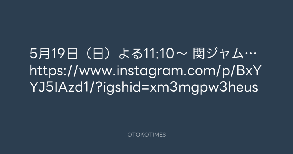 5月19日(日)よる11:10~ 関ジャム… https://www.instagram.com/p/BxYYJ5IAzd1/?i... -