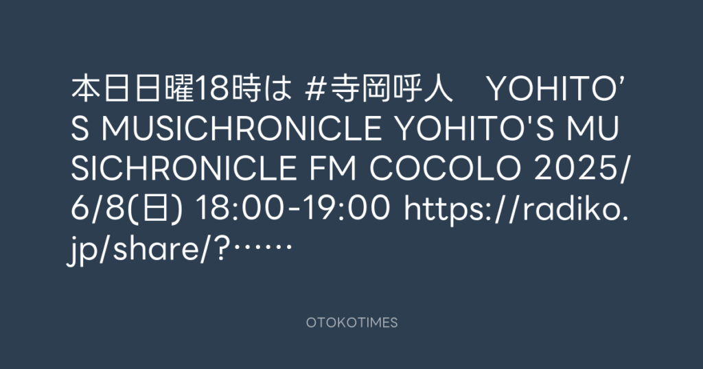 本日日曜18時は #寺岡呼人 YOHITO’S MUSICHRONICLE YOHITO'S MUSICHRONICLE FM CO... -