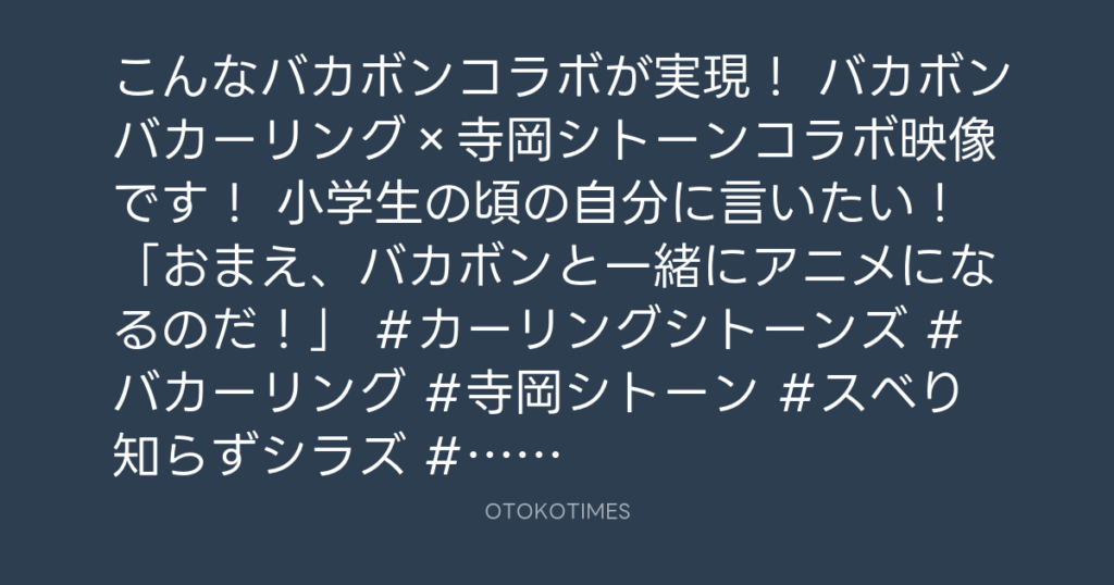 こんなバカボンコラボが実現! バカボンバカーリング×寺岡シトーンコラボ映像です... -