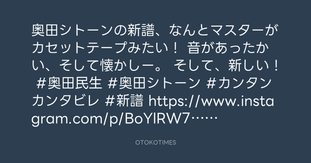 奥田シトーンの新譜、なんとマスターがカセットテープみたい! 音があったかい、そ... -